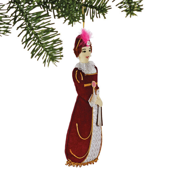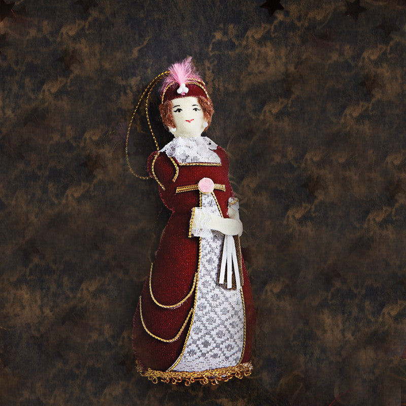 One of the first-floor guest rooms at Monticello was dubbed the "Madison Room," after President James Madison and his wife Dolley, two regular visitors to Monticello. Madison lived twenty-eight miles away -- a quick trip today, but a day's journey in the 1800s. Mrs. Madison's ties to the family were also strong. Because Thomas Jefferson's wife died in 1782, Mrs. Madison served as the widower's hostess during his first term as president in Washington, D.C. This ornament is made by hand using centuries-old method of zardozi embroidery.