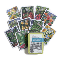 Discover the joys of gardening with our flower seed collections and vegetable seed collections, specially curated by the expert gardeners at Monticello. Each seed pack collection is packaged in an attractive, reusable, and recyclable tin. Our flower seed packets feature gorgeous paintings by a Charlottesville artist that make them excellent gifts for gardening friends. Our heirloom seed collections are non-GMO, open-pollinated heirloom varieties or straight species. Seeds will typically remain viable for several years when stored in a cold, dry environment, such as an airtight container in your refrigerator.