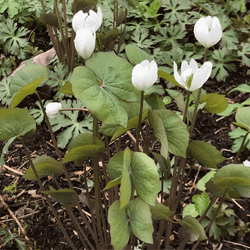 Description: Small white flowers resembling those of bloodroot appear on stems in early spring before the leaves expand. Unusual lidded seedpods mature in early summer.