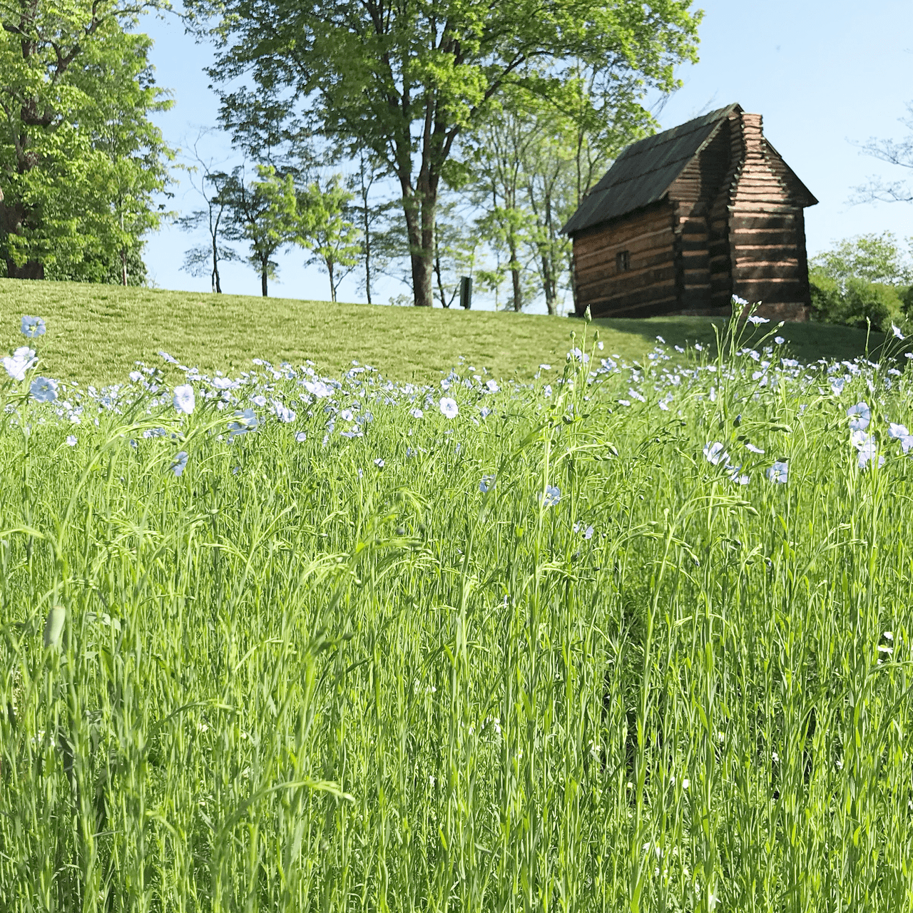 Common Flax was cultivated at Monticello by 1779, when Jefferson recorded the occurrence of late severe frosts in April that killed “all the flax.” Flax was considered a staple commodity for the manufacture of “necessary articles of clothing;” it was grown in the farm fields and spun into linen in the Textile Workshop on Monticello’s Mulberry Row.