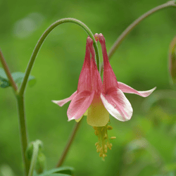 Thomas Mann Randolph, Thomas Jefferson's horticulturally astute son-in-law, observed the native or American columbine blooming at Monticello on April 30, 1791, and the species can still be found growing wild at Monticello. This graceful and highly ornamental flower was introduced to Europe and documented in British gardens by the 1640's. Bernard McMahon's Broadside Catalogue c. 1800 listed seed of this wildflower as 'Feathered Columbine'. This was a popular common name referring to the way the delicate flowers and foliage sway with the slightest breeze, reminiscent of ostrich feathers. The flowers of the Native Columbine attract butterflies and hummingbirds, and the seeds provide food for some birds, including finches and buntings. Deer are not typically attracted to this plant.
