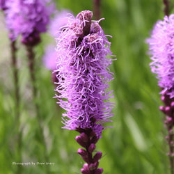 This species of Liatris is native to moist areas in eastern North America. In The English Flower Garden (1883), William Robinson called it "one of the handsomest and neatest...its violet purple spikes continue long in beauty."